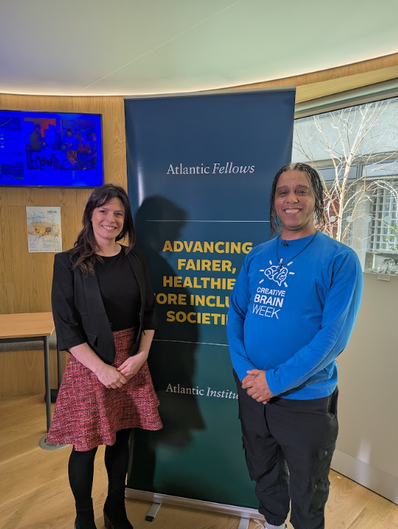 Atholl Kleinhans and Eimear McGlinchey began collaborating after meeting at Creative Brain Week in 2023. Atholl, an Atlantic Fellow for Health Equity in South Africa, is a lecturer and researcher of wellness. Eimear, an Atlantic Fellow for Equity in Brain Health, is an assistant professor in intellectual disability in Ireland. Their meeting was the catalyst for multiple collaborative projects involving each other and other Fellows: Atlantic Fellows for Health Equity in South Africa, Yvette Andrews and Bulela Vava; Kirti Ranchod, Atlantic Fellow for Equity in Brain Health and chair of the Africa Brain Health Network; Atlantic Fellow for Racial Equity, Bongiwe Lusizi; and a regional mentor at GBHI, Juan Fortea. Specifically, they have helped improve the lives of people with Down Syndrome in South Africa and used their collective learning and experience to advance health equity across continents. Listen here.